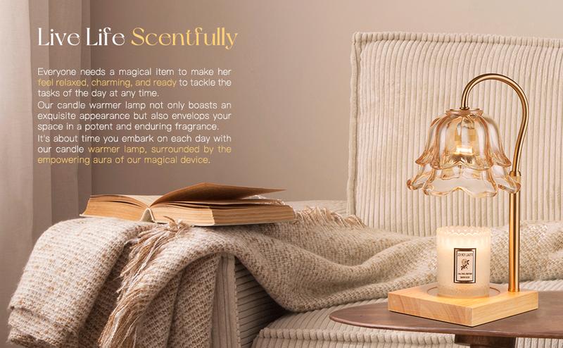 Flower Candle Warmer Lamp, with 2 Bulbs, Height Adjustable with Timer, Unique Glass Lily of the Valley Lamp for Home & Bedroom Decor, Ideal Gift for Birthday/Mother's Day, Halloween Gifts, Christmas Gifts